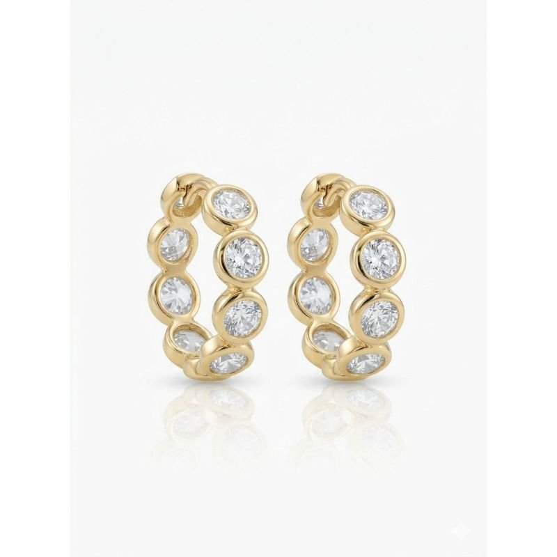Eleve sua elegância diária com esta argola sofisticada. Meticulosamente elaborado com uma fileira radiante com pedras de zircônia, esta argola combina luxo clássico com design moderno. Cada pedra cria um visual elegante e continuo que maximiza o brilho de cada pedra.