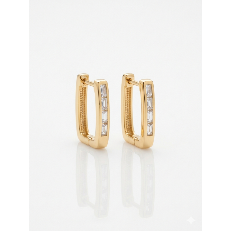 Uma reinterpretação arrojada das argolas clássicas. Este modelo retangular combina linhas retas e sofisticadas com brilho eterno das pedras cravejadas. É a escolha ideal para quem procura um acessório que foge do óbvio, mantendo uma elegância minimalista.
